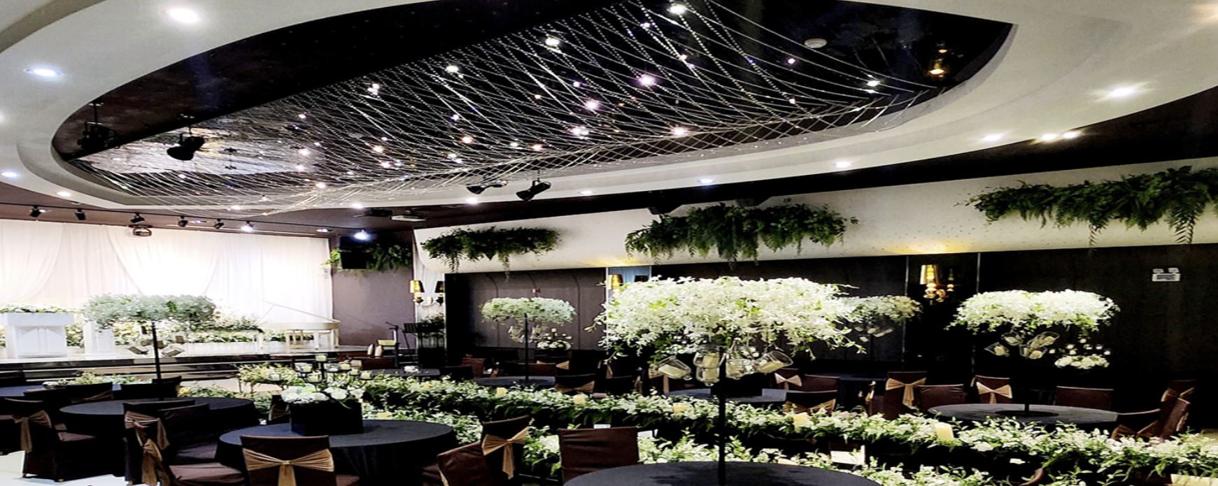 웨딩홀의 가장 큰 특징은 그 화려한 인테리어입니다. 고급스러운 샹들리에와 세련된 장식이 어우러져 특별한 날을 더욱 빛나게 해 줍니다. 홀의 구조는 원형으로 되어 있어 하객들이 모두 신랑신부를 잘 볼 수 있도록 설계되어 있습니다. 또한, 최신 음향 및 조명 시스템이 갖춰져 있어, 결혼식의 분위기를 한층 더 고조시켜 줍니다.